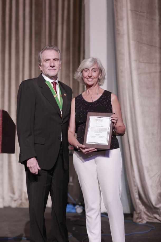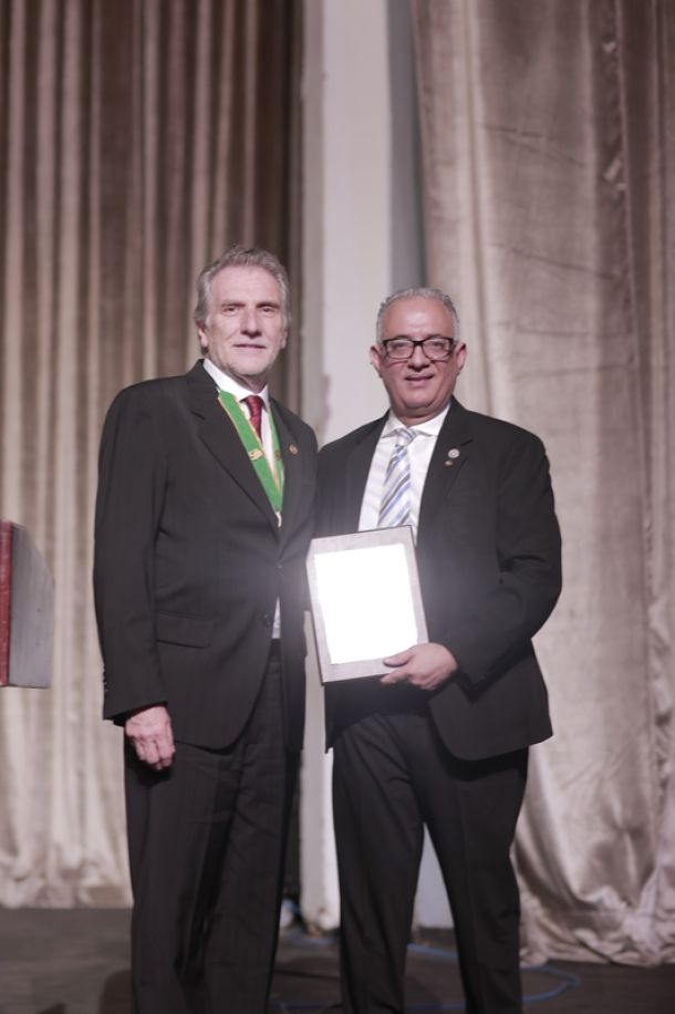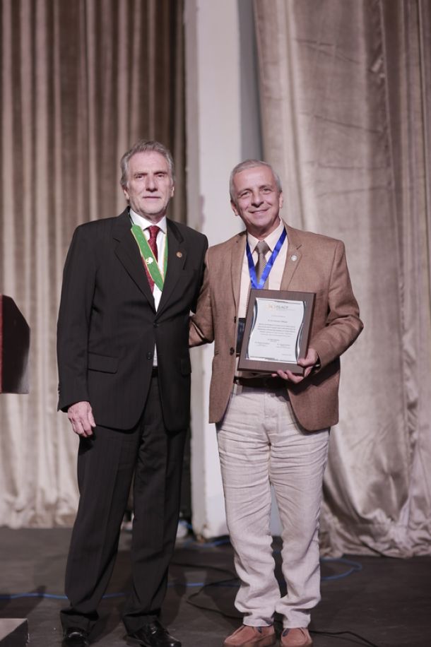 El Dr. Pablo Dávalos entregando sus reconocimientos a los organizadores del Congreso: Dr. Aniceto Rodríguez, Dr. Francisco Villegas y Dra. María del Mar Vaquero.
